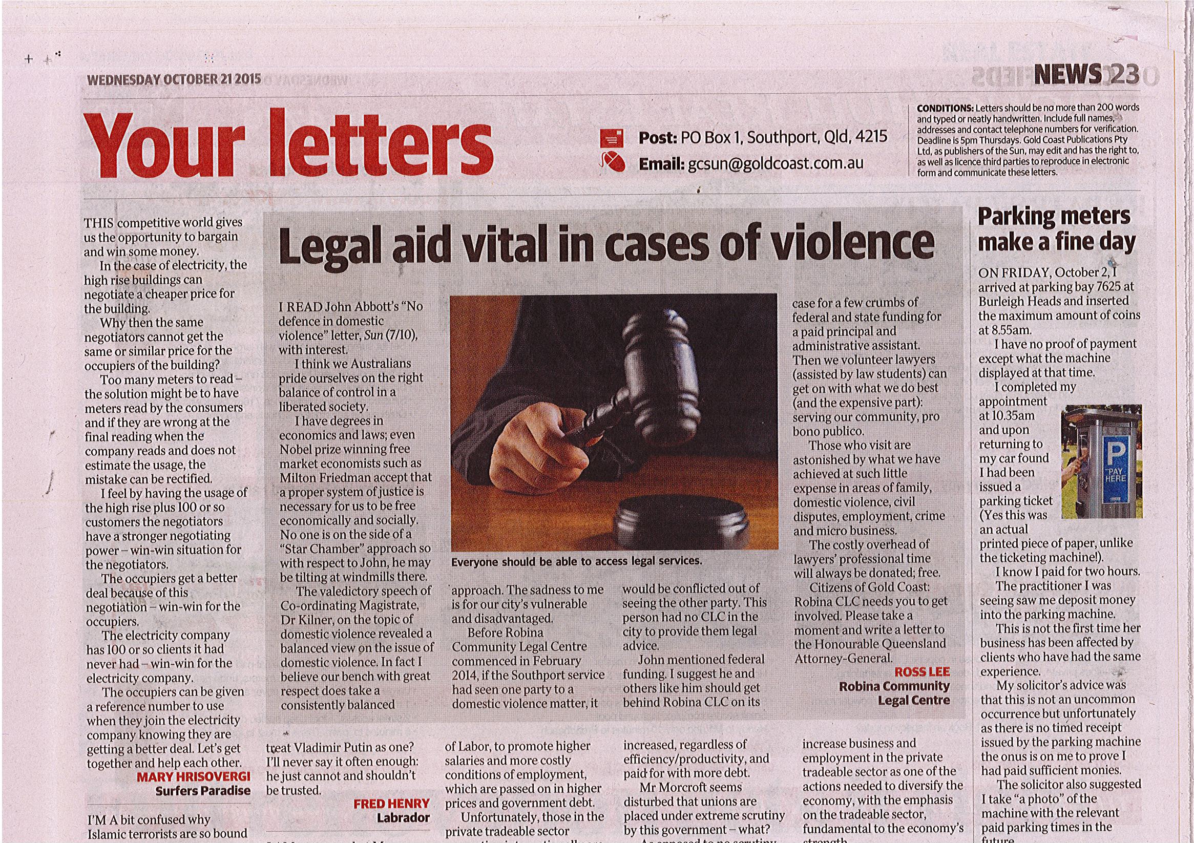 Letter Published – GC Sun 20 Oct 2015 | Blog Letter published in the Gold Coast Sun newspaper this week. Thank you Editor and staff.